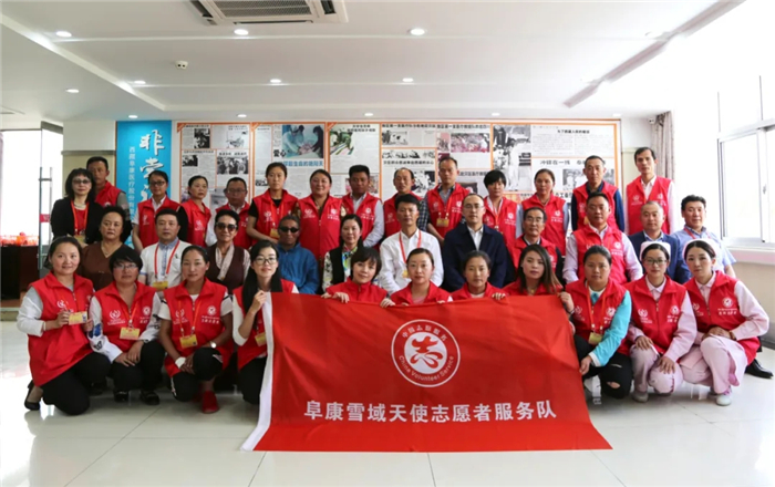 西藏阜康雪域天使志愿者服務(wù)隊(duì)成立于2017年,以"奉獻(xiàn)、友愛、互助、進(jìn)步”為宗旨,在患者就診秩序維護(hù)、敬老助殘、醫(yī)療解答、保護(hù)環(huán)境、社區(qū)義診、健康講座、送醫(yī)送藥下鄉(xiāng)等領(lǐng)域開展了多種形式的志愿活動。